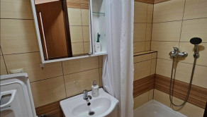 --> Kúpeľňa so sprchovacím kútom a práčkou