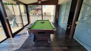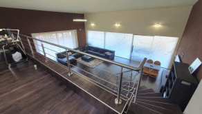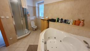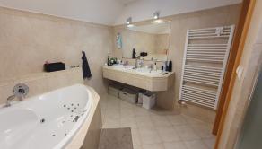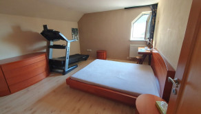 Na poschodí sa nachádza menšia detská izba v tvare písmena L, 1. spálňa /4.39 x 3.84 m/, 2. spálňa /4.93 x 3.80 m/ a kúpeľňa /2.90 x 2.56 m/ s WC, masážnou vaňou a sprchovacím kútom. Podlaha v kúpeľňi je samostatne vyhrievaná. V podkroví je ešte jedna izba. Súčasťou domu je aj presklená zimná záhrada hliníkovej konštrukcie s osadeným izolačným trojsklom, kde je umiestnené jazierko a biliardový stôl.