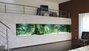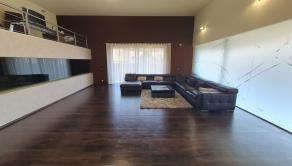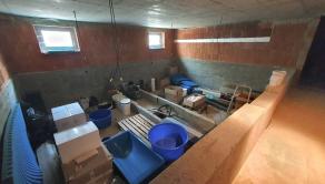 Priestranný dom dispozične pozostáva z veľkej spoločenskej miestnosti /8.6 x 8 m/ s pódiom a so zabudovaným 6 m akváriom, obývacej izby /7.76 x 4.74 m/ s krbom a jedálenským kútom čiastočne prepojenej s kuchyňou /3.95 x 2.79 m/. Cez veľkú spoločenskú miestnosť sa vchádza do suterénu v nedokončeným bazénom /6.43 x 4.92 m/ a ďalším priestorom. Na prízemí sa nachádza ešte samostatné WC a vstupná chodba. Cez vonkajší vstup v druhej časti suterénu sa nachádza práčovňa, technická miestnosť s kondenzačným aj zálohovým elektrickým kotlom, WC a 3 skladové miestnosti.