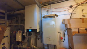 Dom je vykurovaný pomocou tepelného čerpadla zn. Weissmann, k dispozícií je aj záložný elektrický kotol Protherm. Na čiastočné vykurovanie sa dá využiť aj krb na drevo s prieduchmi.