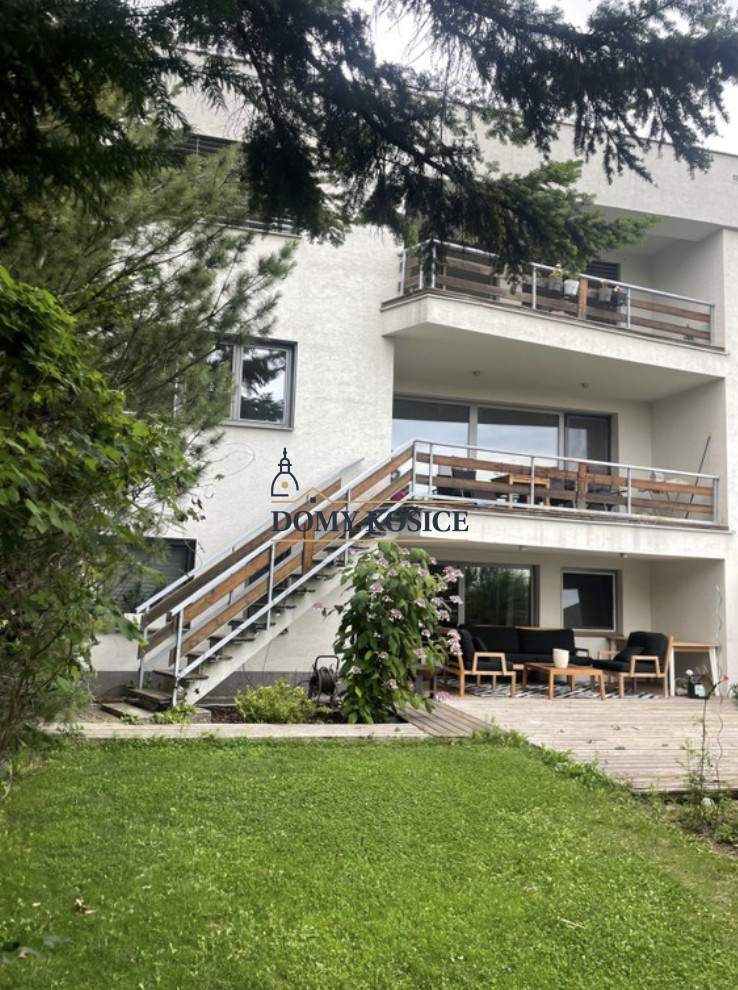 Dom s úžitkovou plochou rozdelenou na 3 podlažia ponúka veľkorysý priestor na bývanie pre rodinu aj náročného klienta. Prenajíma sa čiastočne zariadený, s plne vybavenou kuchyňou, krbom, klimatizáciou a saunou. Súčasťou je udržiavaná záhrada s výmerou 250 m², dve loggie a terasa.