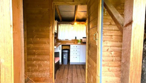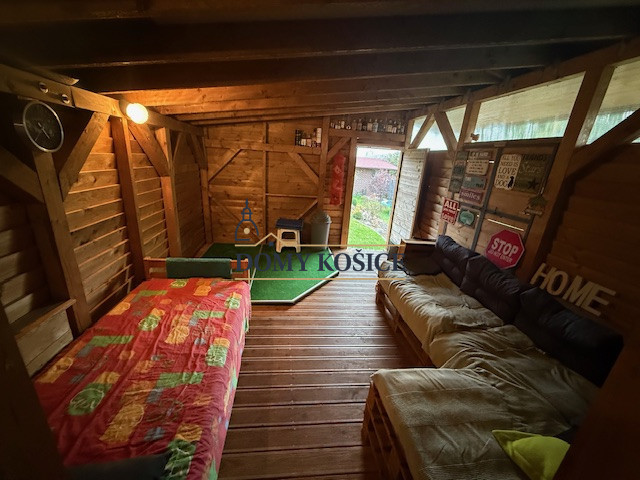 Samotná chata so súpisným číslom pozostáva so staršej časti 11 m2 a novej drevenej časti 30 m2, ktorá nie je pevne spojená so zemou, náchádzajú sa v nej 2 miestnosti a kuchynka. Pod chatou sa nachádza aj pivnica. Tolaleta je aktuálne v zadnej časti pozemku -suché WC. Po zateplení a menšej úprave je možnosť chatu využívať aj na celoročné bývanie.