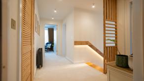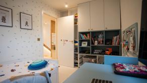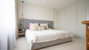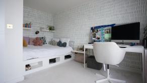 Spálňa so vstavanou skriňou. Detská izba so vstavaným nábytkom.Veľký šatník, technická miestnosť. Kúpeľňa s vaňou, oknom a radiátorom. Znížené stropy v celom podlaží. Radiátory v izbách, termostat na poschodí